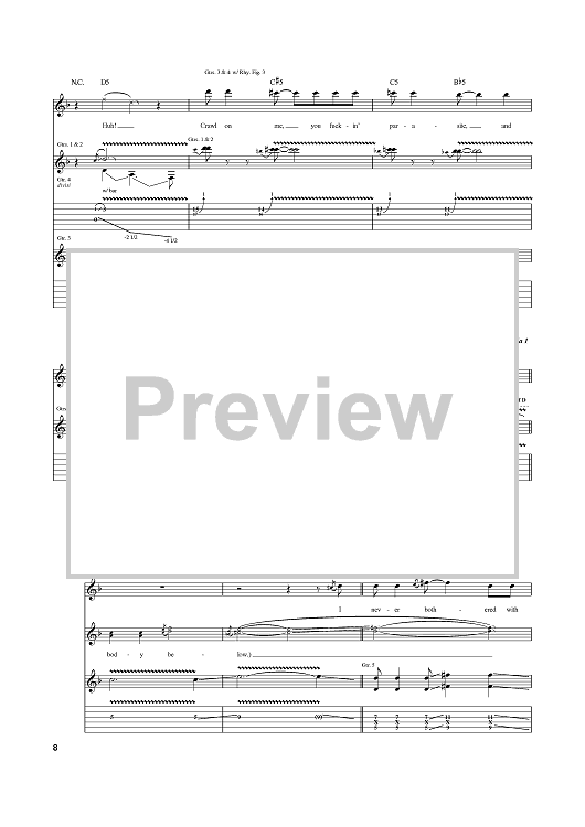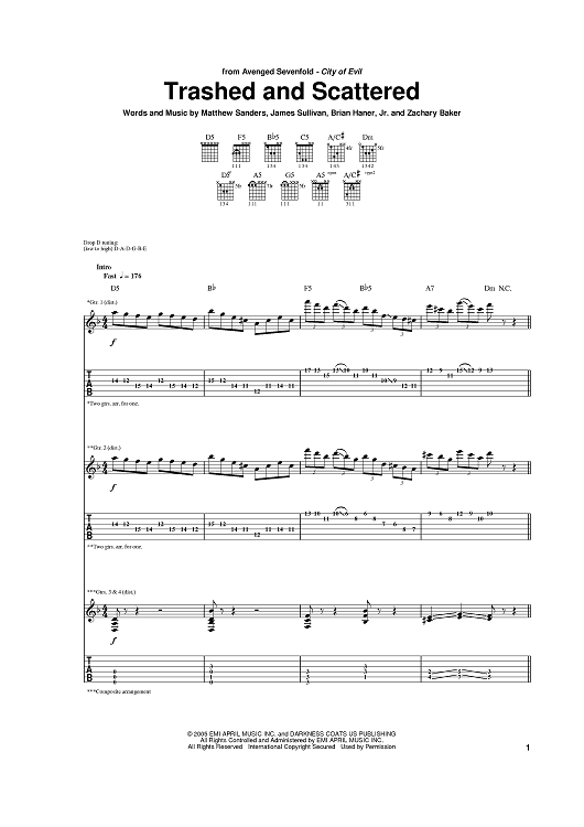 Digital Sheet Music for Trashed And Scattered by Avenged Sevenfold, Zachary Baker, Jr., Brian Haner, Matthew Sanders, James Sullivan scored for Guitar Tab; id:388762