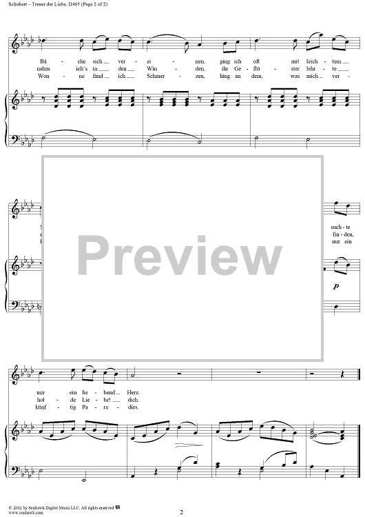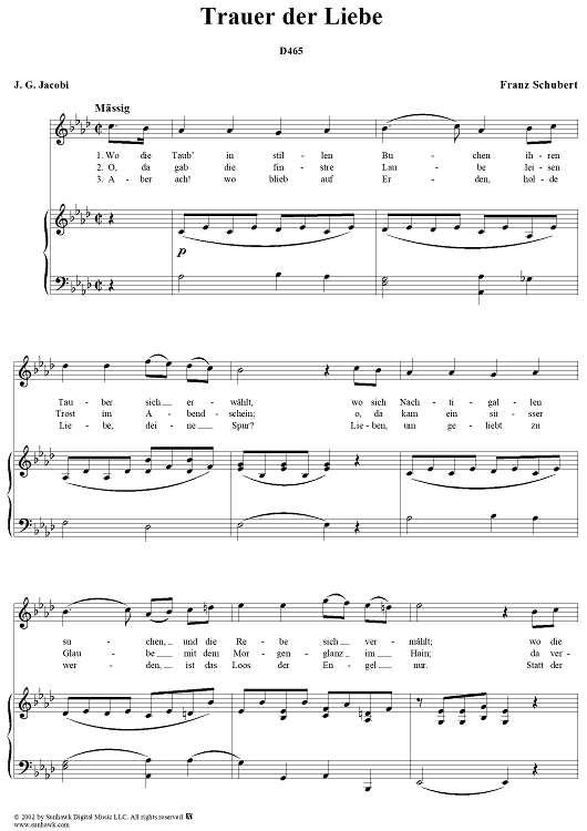 Digital Sheet Music for Trauer der Liebe, D465 by Franz Schubert scored for Voice/Piano; id:256657