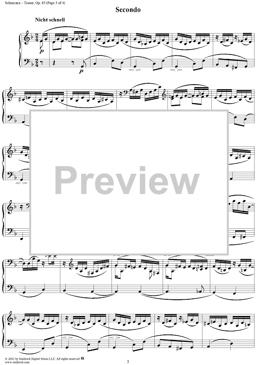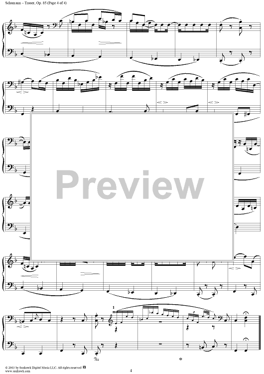 Digital Sheet Music for Trauer, No. 6 from "12 Klavierstücke für kleine und grosse Kinder" (Op. 85) by Robert Schumann scored for 1 Piano, 4 Hands; id:294462