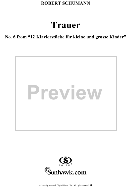 "Trauer, No. 6 from "12 Klavierstücke für kleine und grosse Kinder" (Op. 85)" Sheet Music by Robert Schumann