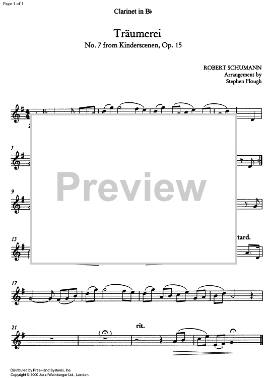 "Träumerei - Clarinet" Sheet Music by Robert Schumann