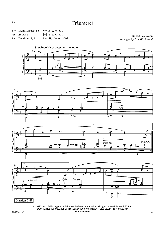 Digital Sheet Music for Träumerei by , Robert Schumann, James Southbridge, Tom Birchwood scored for Organ Solo; id:433466
