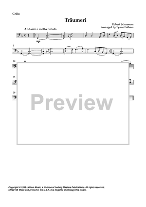 Digital Sheet Music for Träumeri - Cello by , Robert Schumann, Lynne Latham scored for String Trio; id:450468