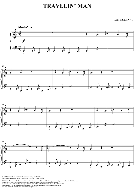 Digital Sheet Music for Travelin' Man by Sam Holland scored for Easy Piano; id:289577