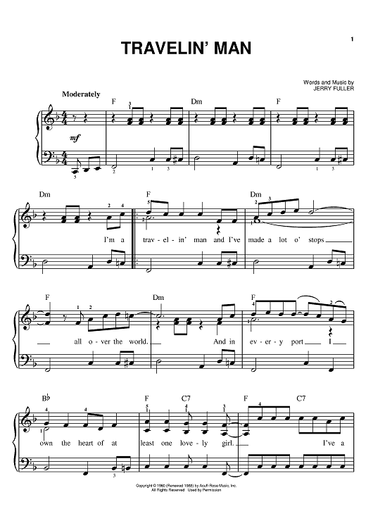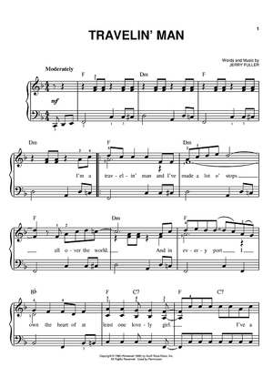 Digital Sheet Music for Travelin' Man by Ricky Nelson, Jerry Fuller scored for Easy Piano; id:367483