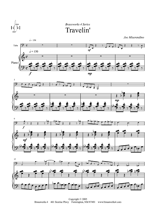 Digital Sheet Music for Travelin' - Piano Score by Joe Miserendino scored for Tuba/Piano; id:357890