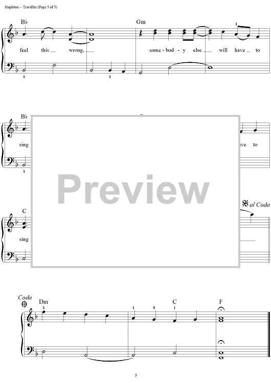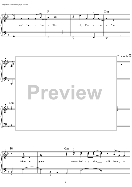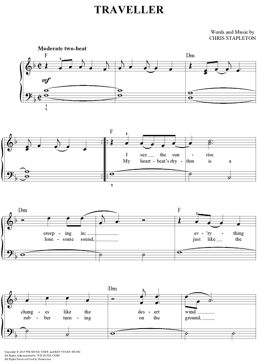 Digital Sheet Music for Traveller by Chris Stapleton scored for Easy Piano/Vocal/Chords; id:464112