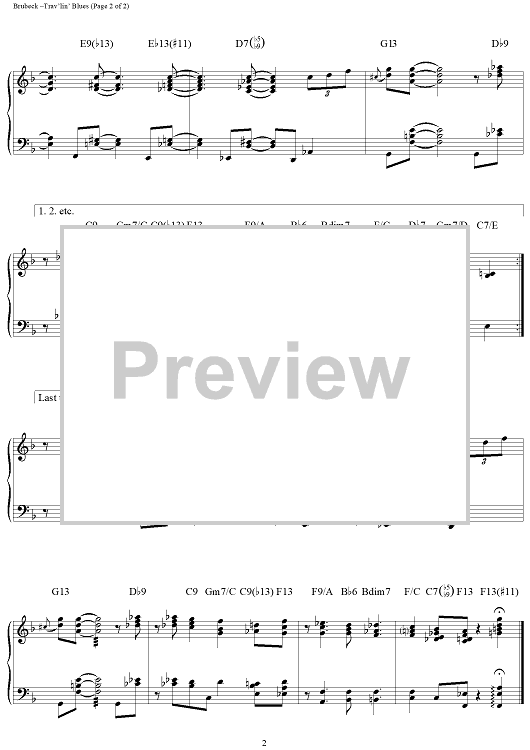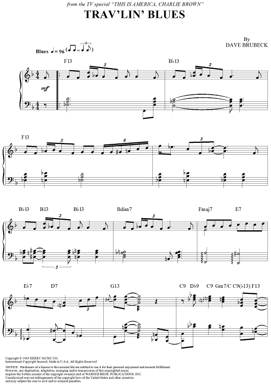 Digital Sheet Music for Trav'lin' Blues by Dave Brubeck scored for Piano Solo; id:275980
