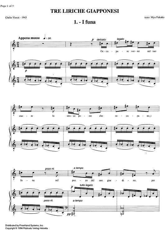 Digital Sheet Music for Tre Liriche Giapponesi No. 1 - I funa by , Giulio Viozzi scored for Soprano or Tenor/Piano; id:334399