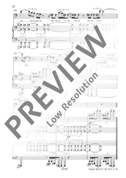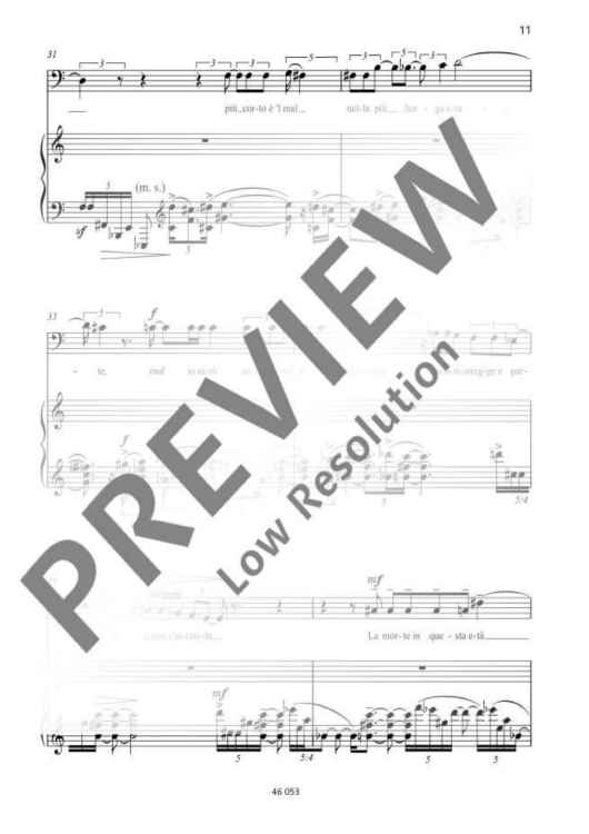 The musical settings of Michelangelo's poems for baritone and piano are, over long sections, a dark monologue which is interrupted, commented and continued by sonorous figures in the piano.