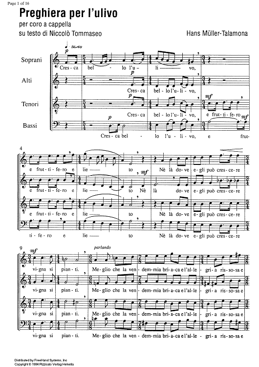 "Tre preghiere" Sheet Music by Hans Müller-Talamona