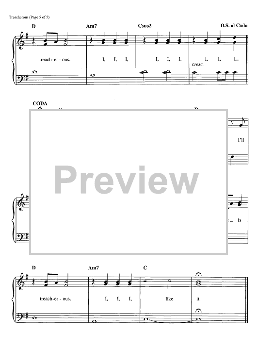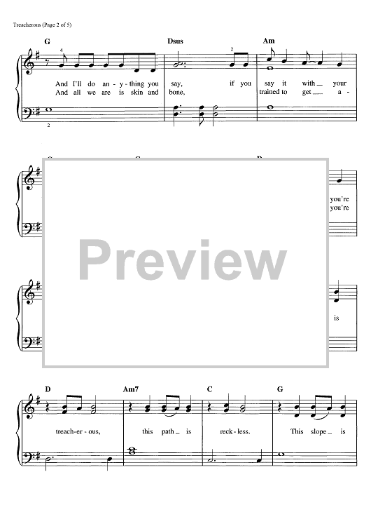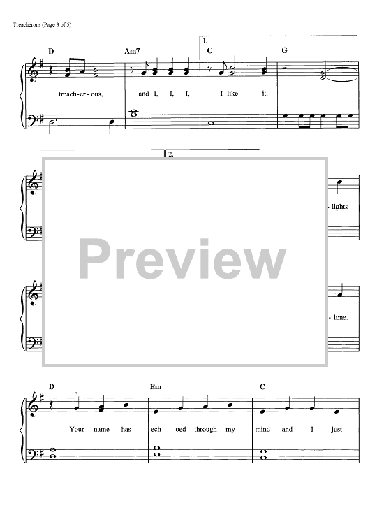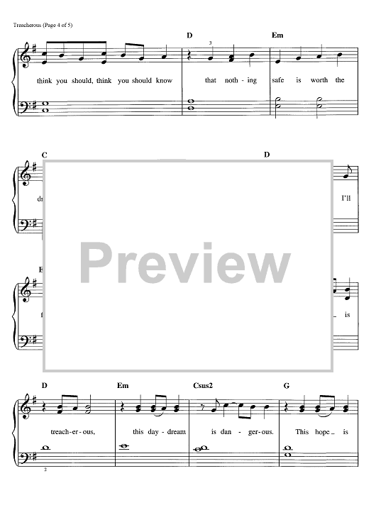Digital Sheet Music for Treacherous by Dan Wilson, Taylor Swift scored for Easy Piano/Vocal/Chords; id:456946
