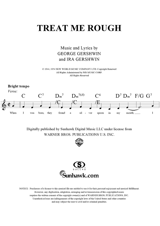 Digital Sheet Music for Treat Me Rough by , George Gershwin, Ira Gershwin scored for Lead Sheet; id:283756