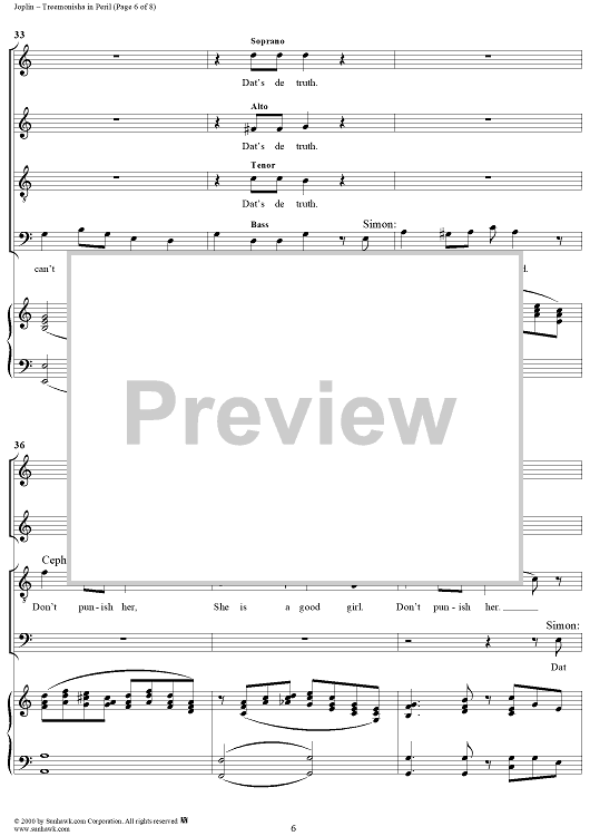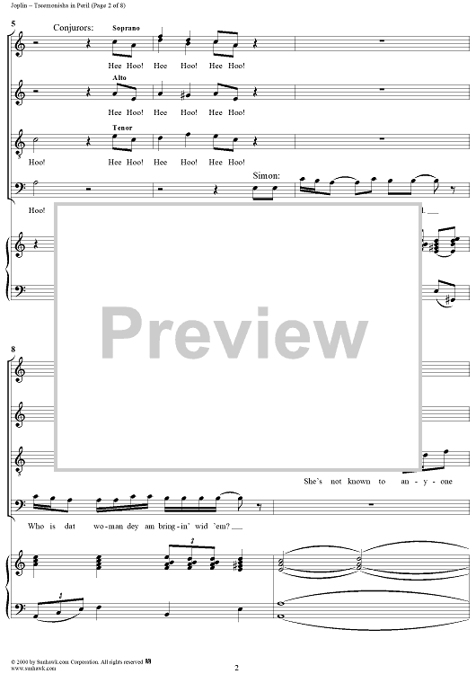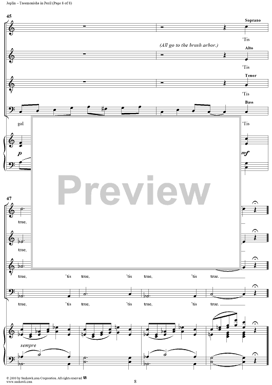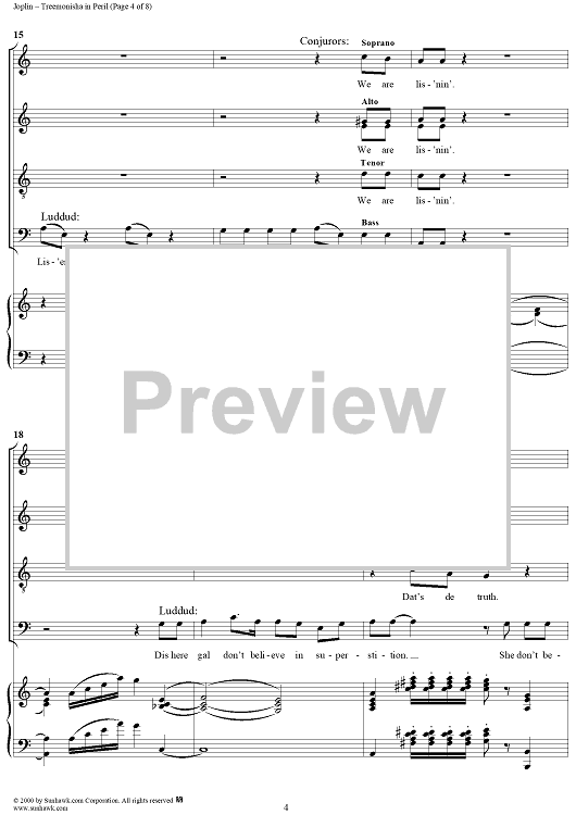 Digital Sheet Music for Treemonisha, No. 12: Treemonisha in Peril by Scott Joplin scored for Soli/SATB/Piano; id:265391