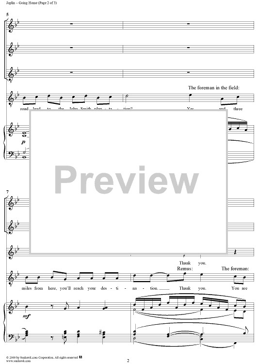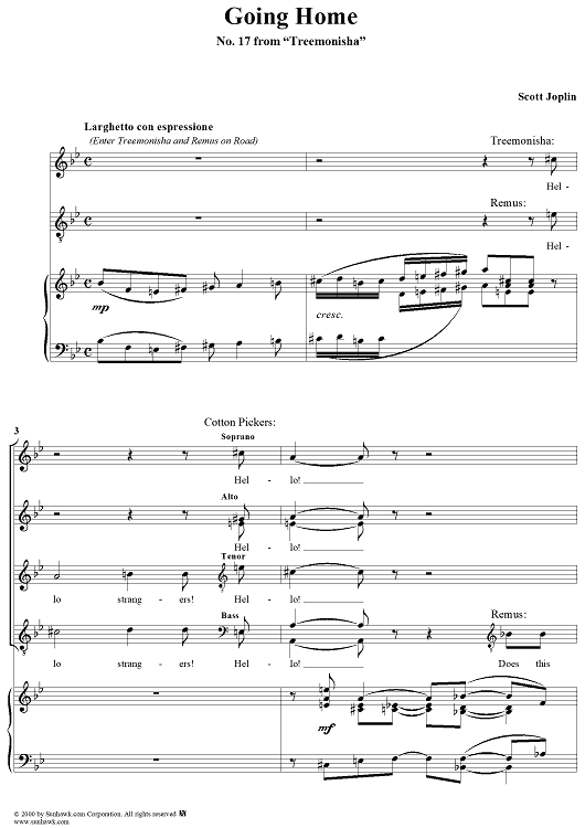 Digital Sheet Music for Treemonisha, No. 17: Going Home by Scott Joplin scored for Soli/SATB/Piano; id:265402