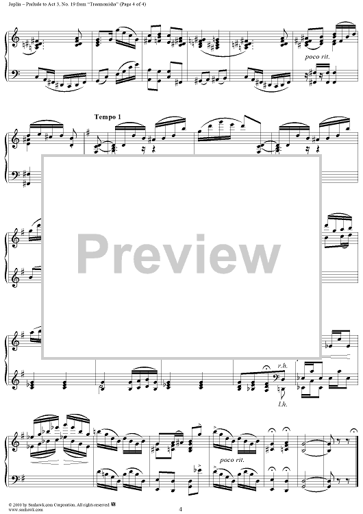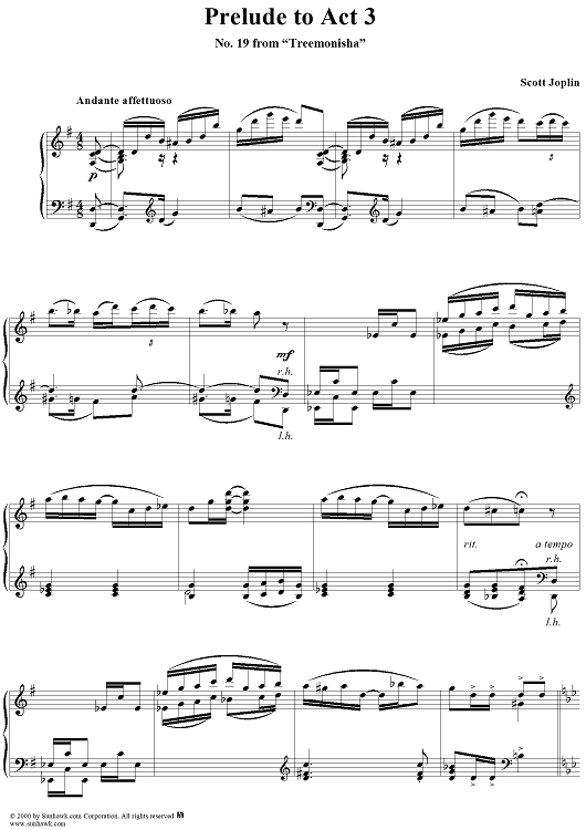 Digital Sheet Music for Treemonisha, No. 19: Prelude to Act 3 by Scott Joplin scored for Piano Solo; id:265411