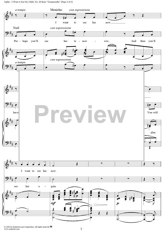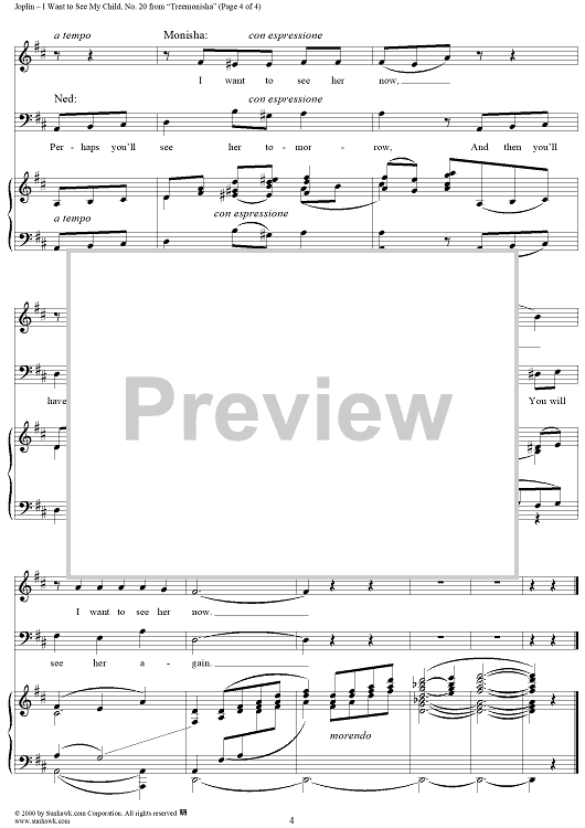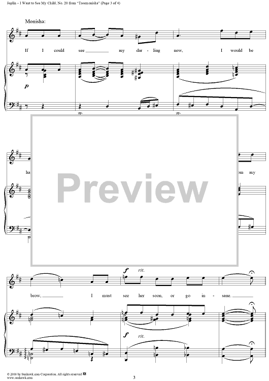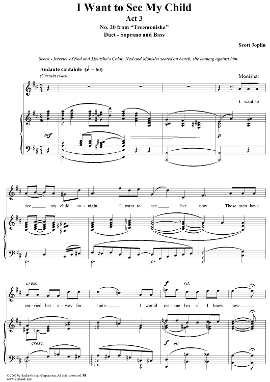 Digital Sheet Music for Treemonisha, No. 20: I Want to See My Child by Scott Joplin scored for Piano/Vocal; id:265404
