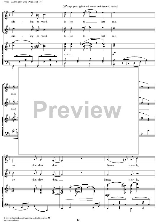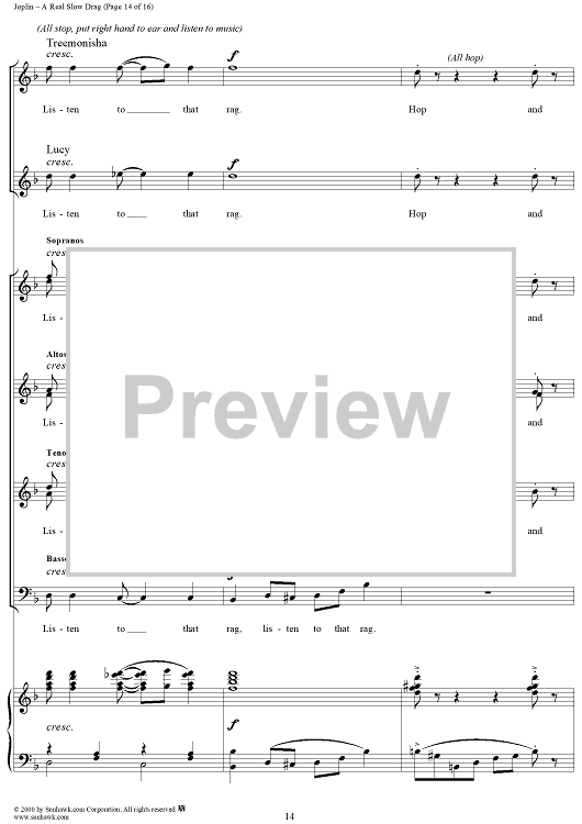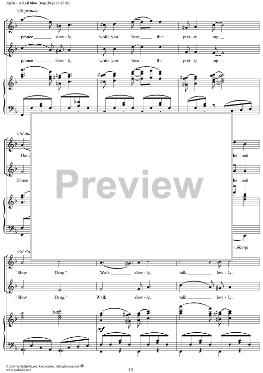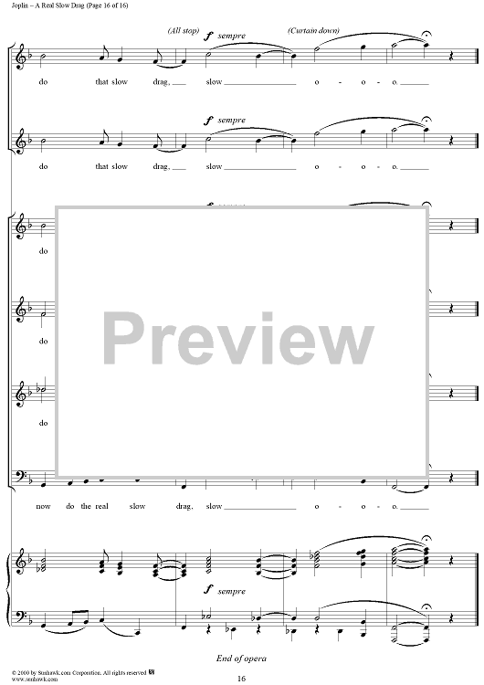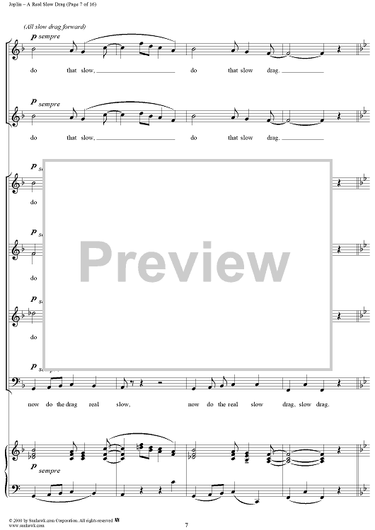 Digital Sheet Music for Treemonisha, No. 27: A Real Slow Drag by Scott Joplin scored for Soli/SATB/Piano; id:265421