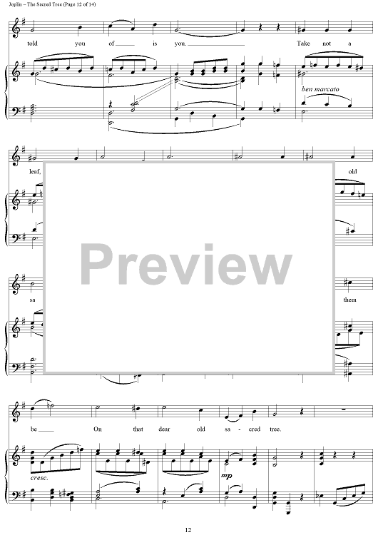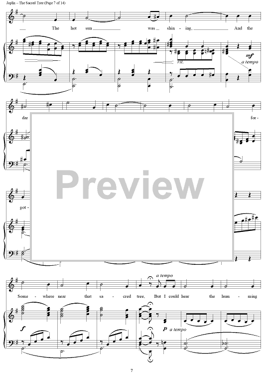 Digital Sheet Music for Treemonisha, No. 6: The Sacred Tree by Scott Joplin scored for Piano/Vocal; id:265396
