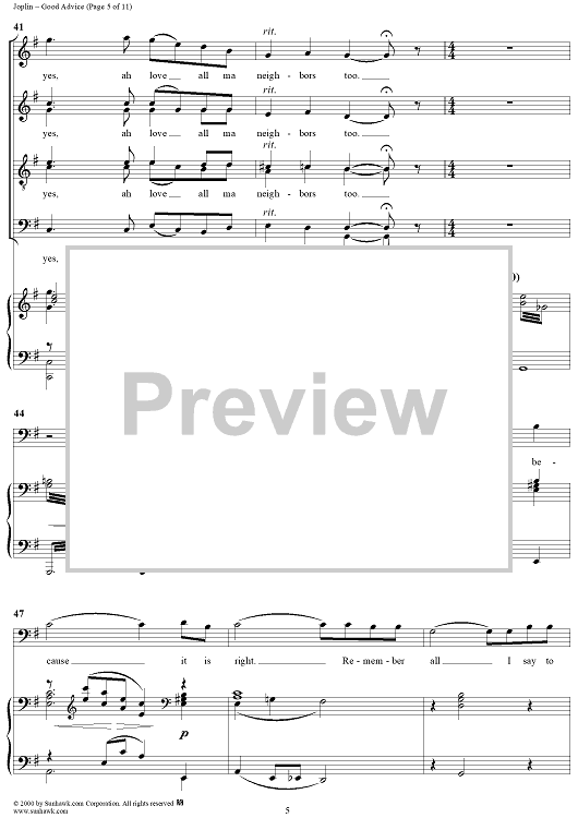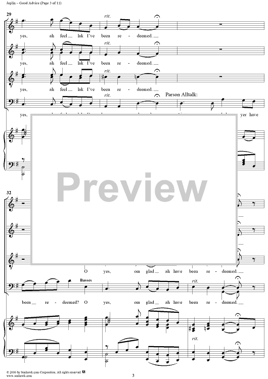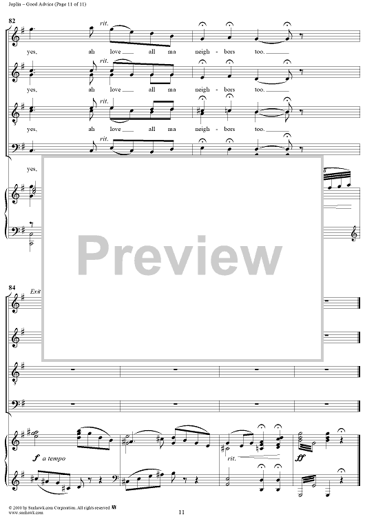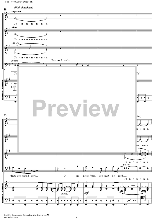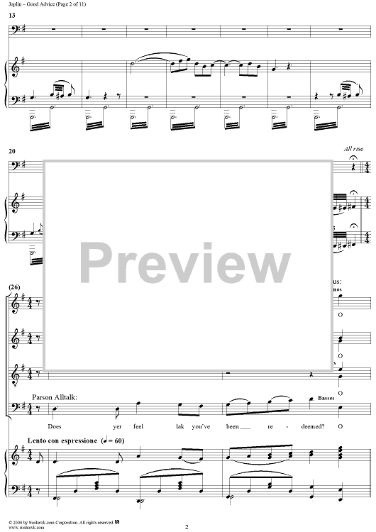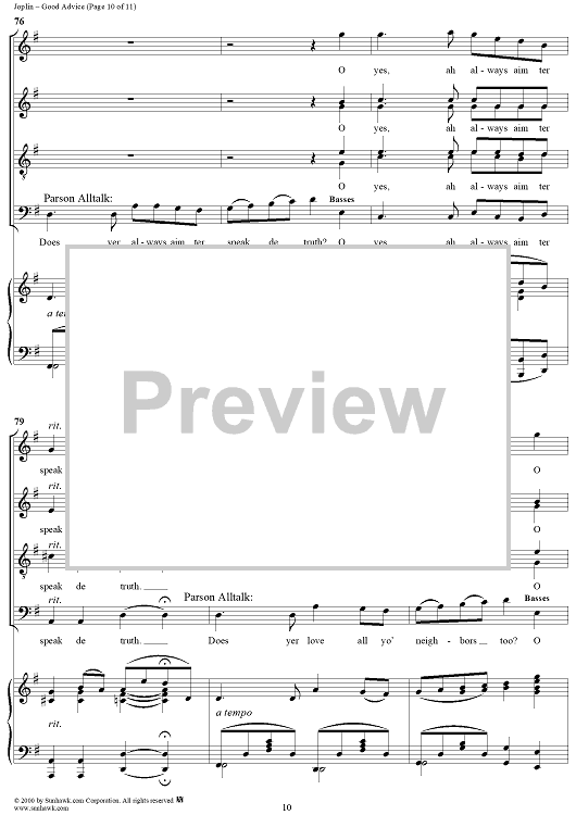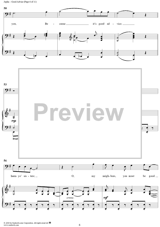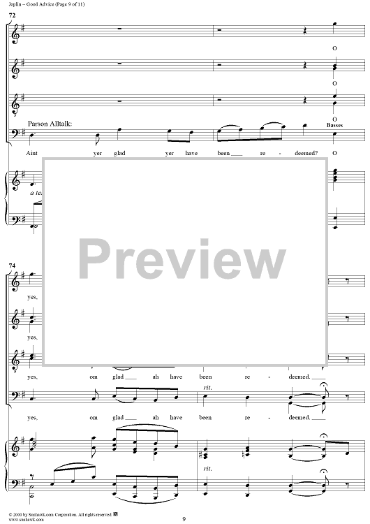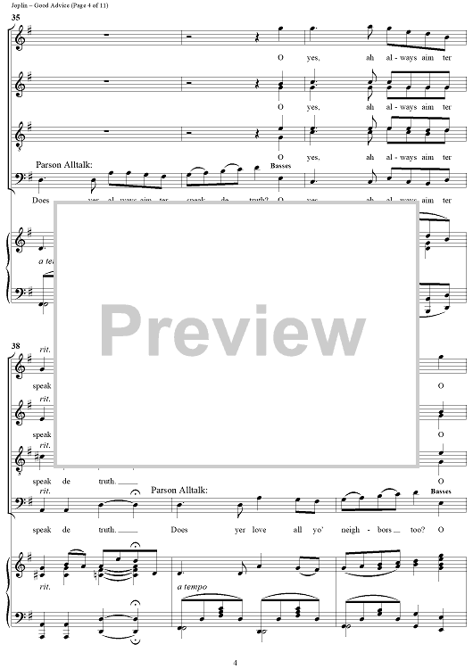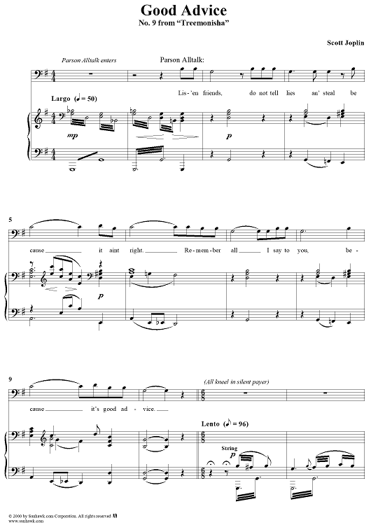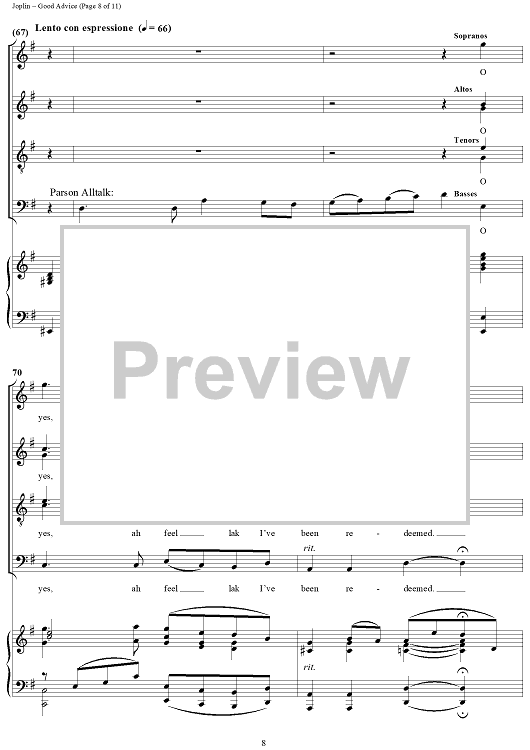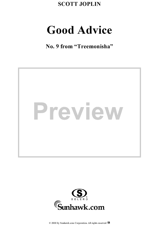 Digital Sheet Music for Treemonisha, No. 9: Good Advice by Scott Joplin scored for Solo/SATB/Piano; id:249552
