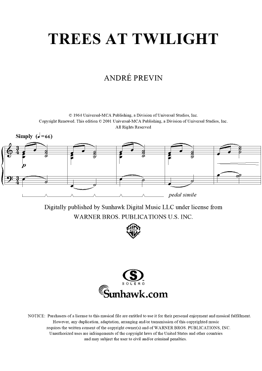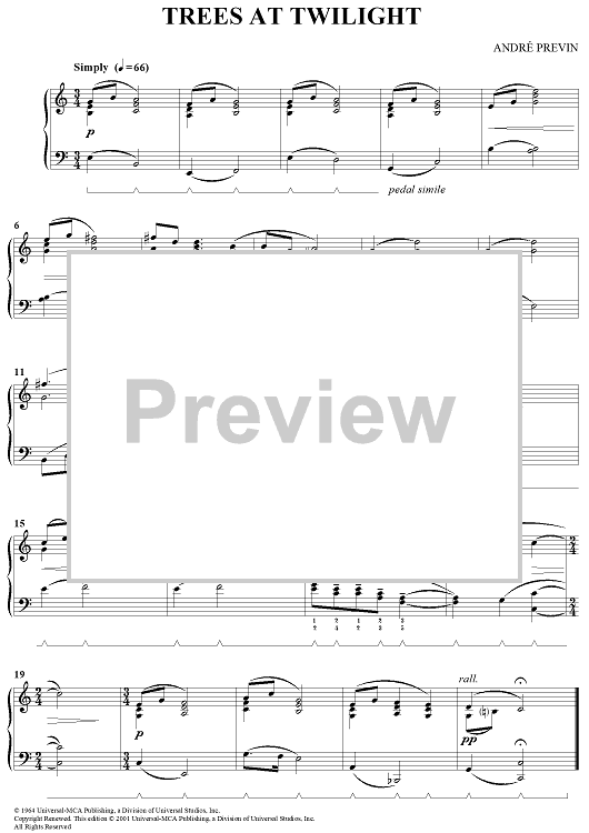 Digital Sheet Music for Trees at Twilight by Andre Previn scored for Piano Solo; id:287461