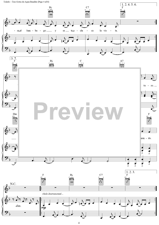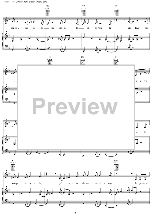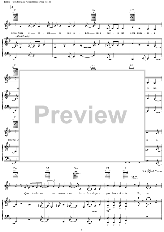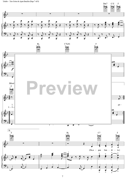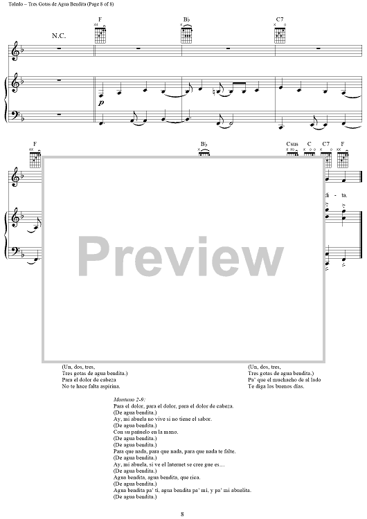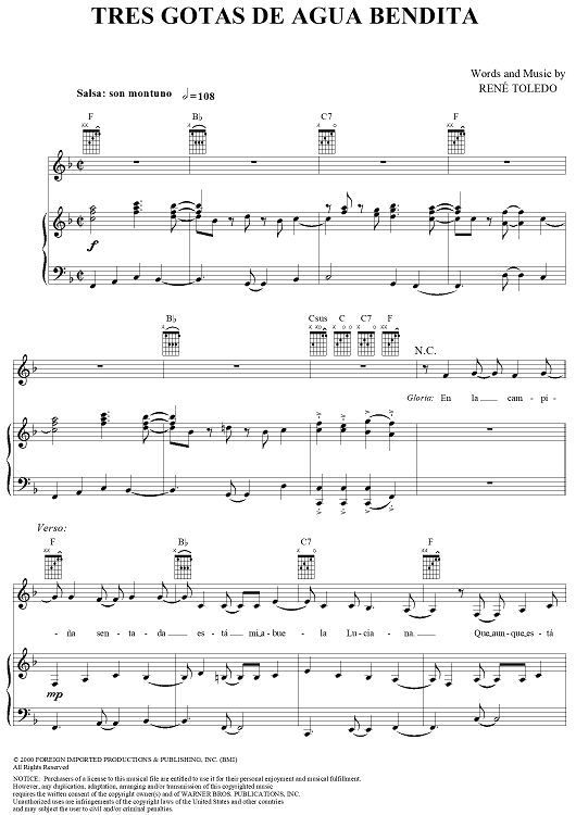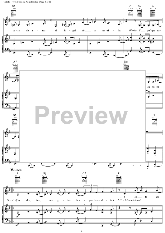 Digital Sheet Music for Tres Gotas de Agua Bendita by Gloria Estefan, René Toledo scored for Piano/Vocal/Chords; id:286377