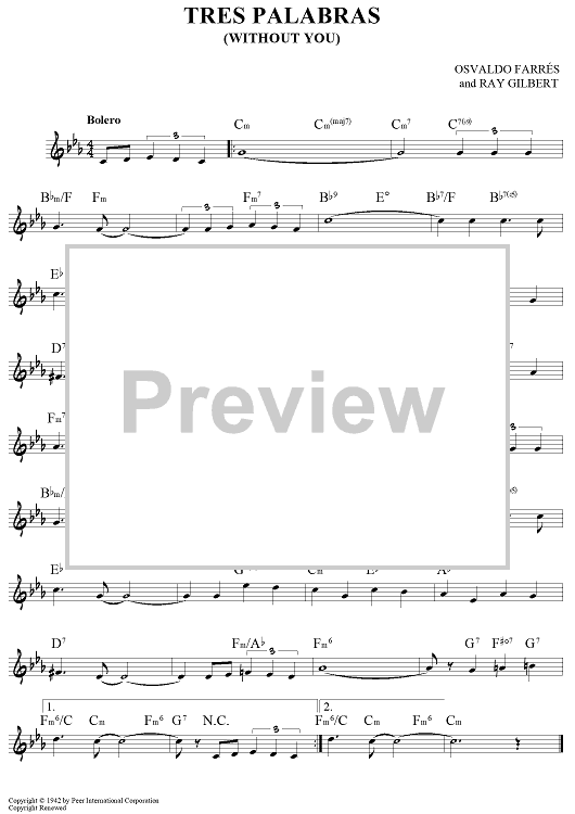Digital Sheet Music for Tres Palabras (Without You) by Ray Gilbert, Osvaldo Farres scored for Lead Sheet; id:457050