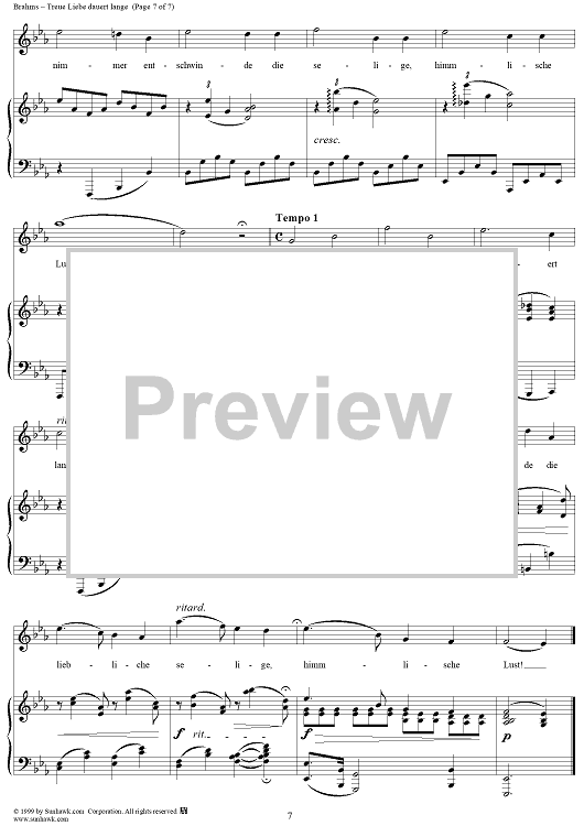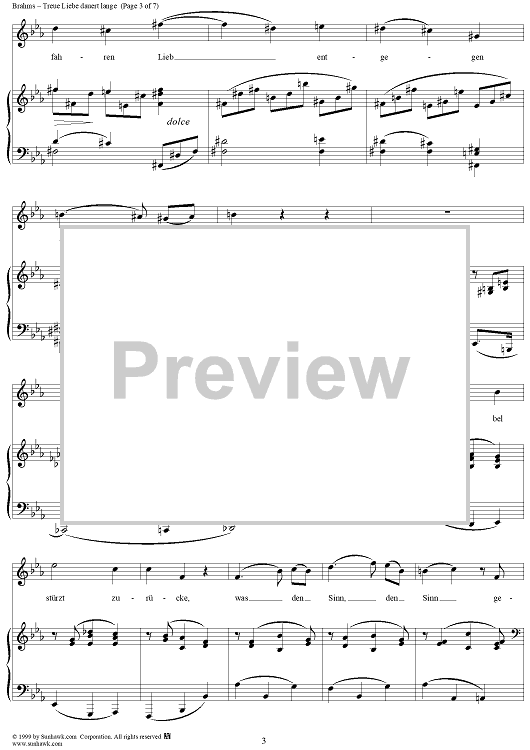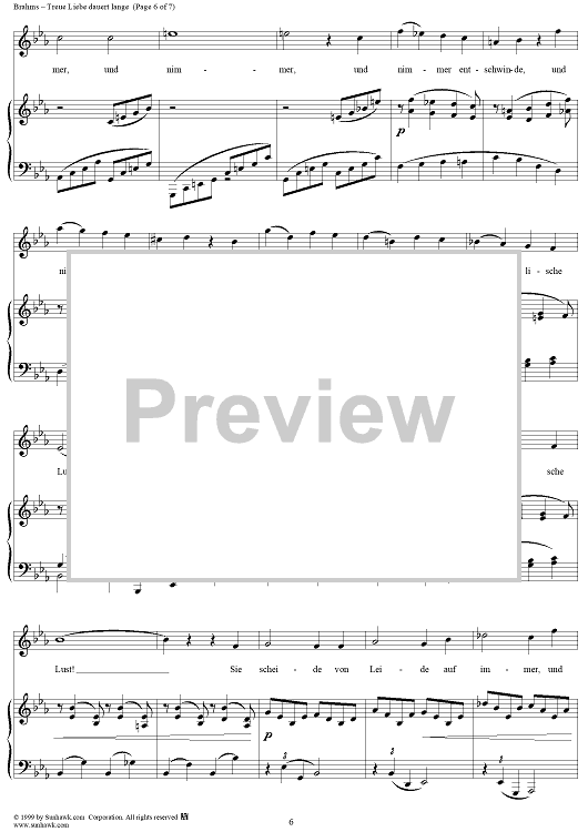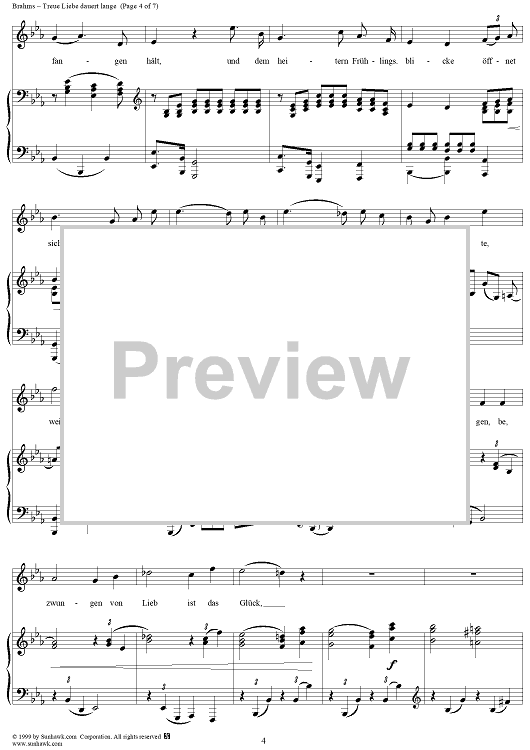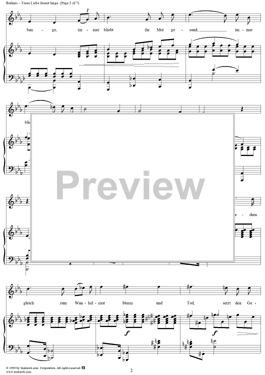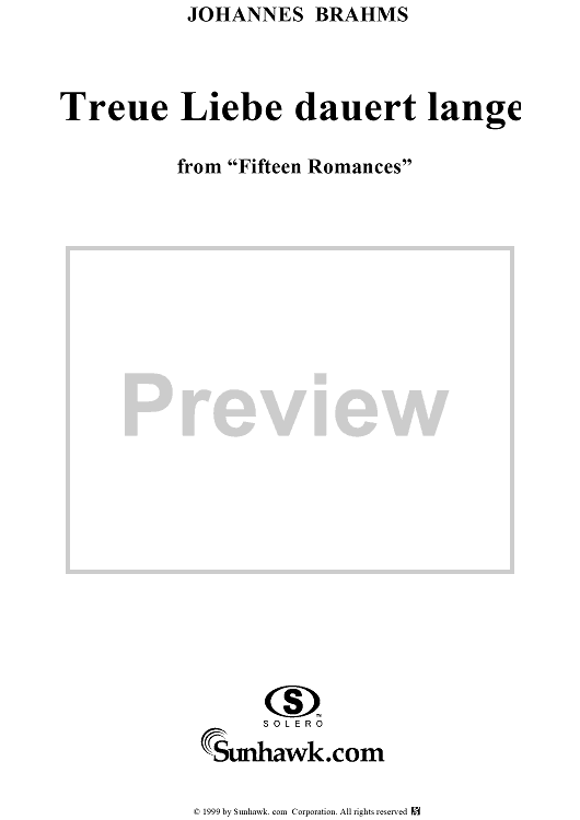 Digital Sheet Music for Treue Liebe dauert lange - From "Fifteen Romances" Op. 33, No. 15 by Johannes Brahms scored for Voice/Piano; id:274084