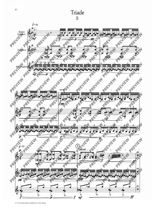 Digital Sheet Music for Triade - Score (also Performing Score) by Heinrich Konietzny scored for Xylophone, Vibraphone, Marimba and 3 Cymbal; id:482600