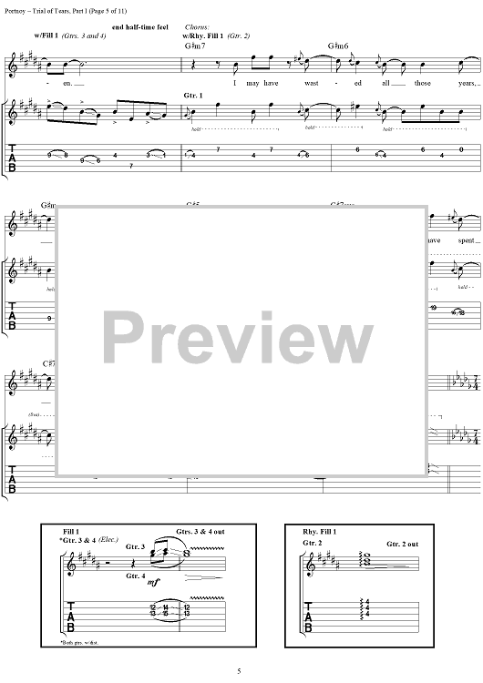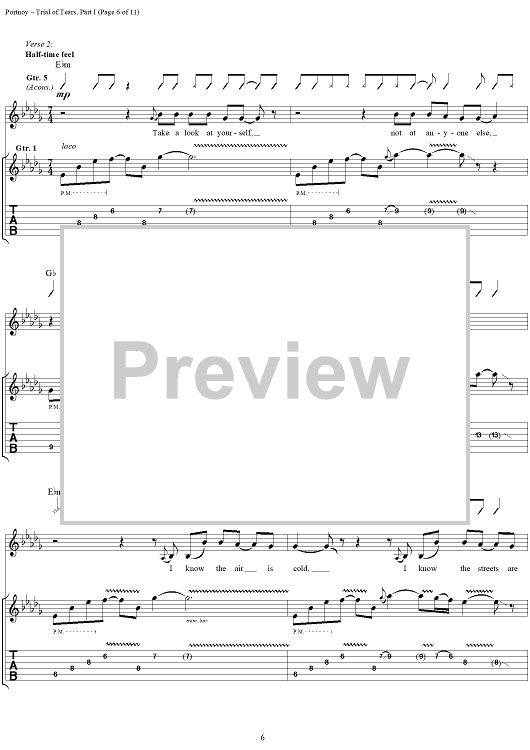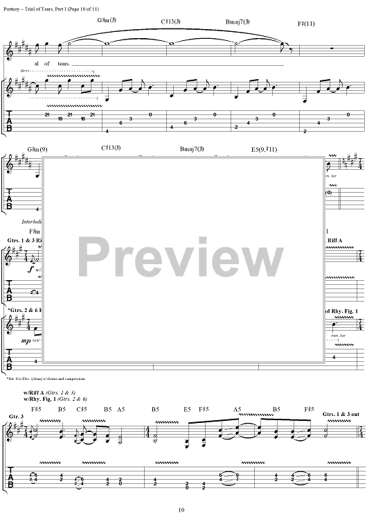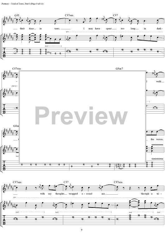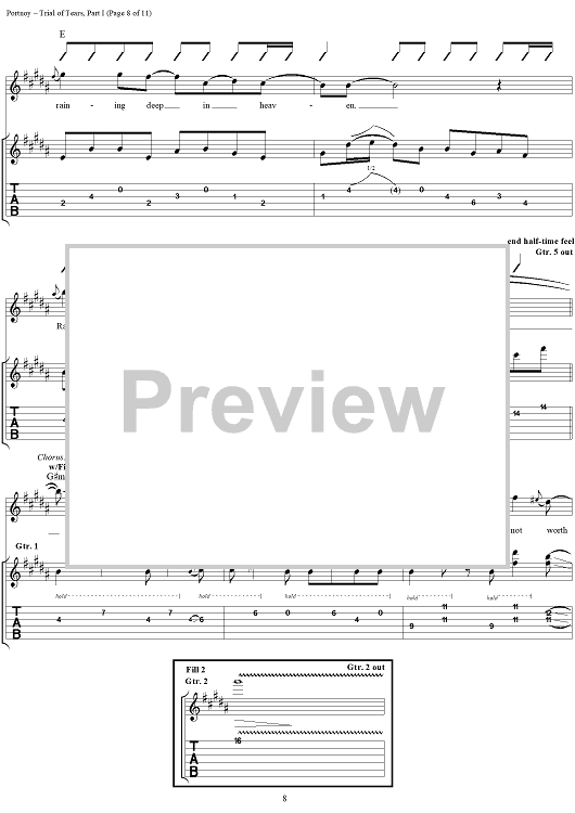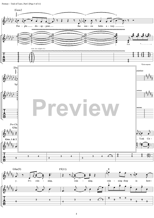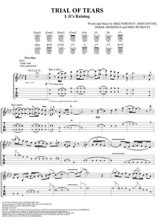 Digital Sheet Music for Trial of Tears, Part 1: It's Raining by John Myung, Michael Portnoy, Derek Sherinian, Dream Theater, John Petrucci scored for Guitar Tab/Vocal; id:114377