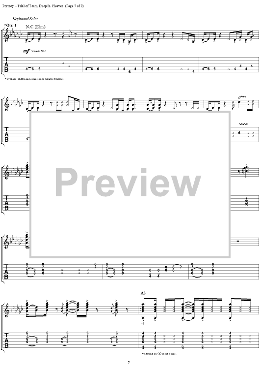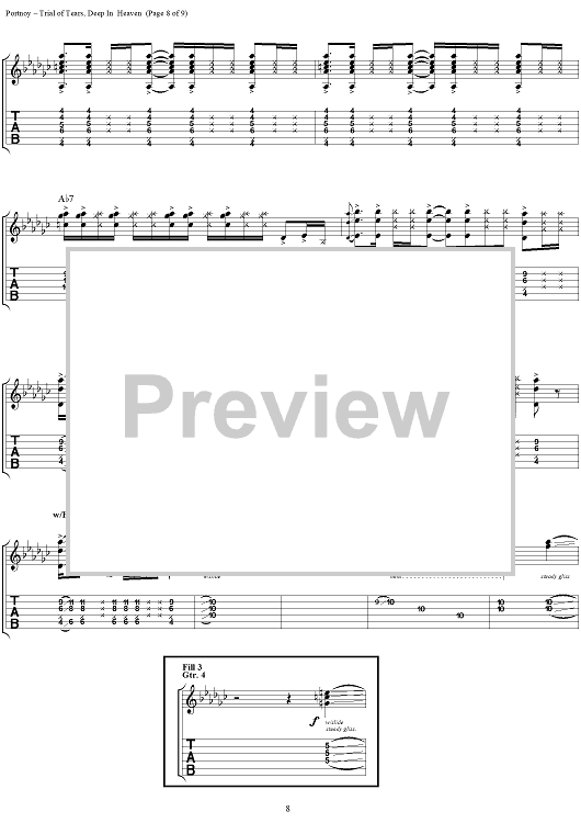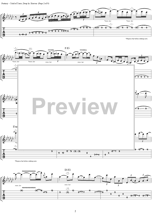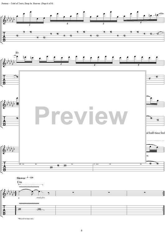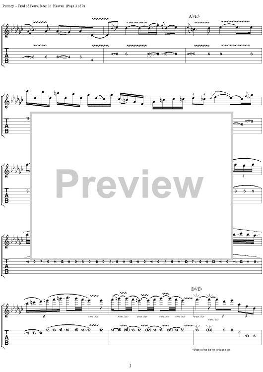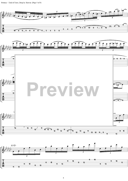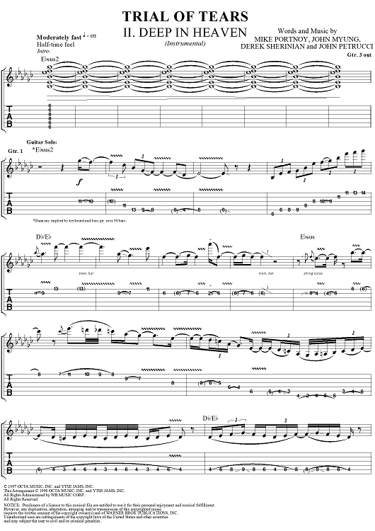 Digital Sheet Music for Trial of Tears, Part 2: Deep in Heaven by John Myung, Michael Portnoy, Derek Sherinian, Dream Theater, John Petrucci scored for Guitar Tab/Vocal; id:113013