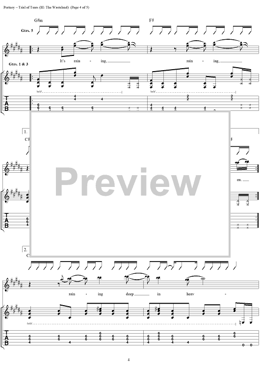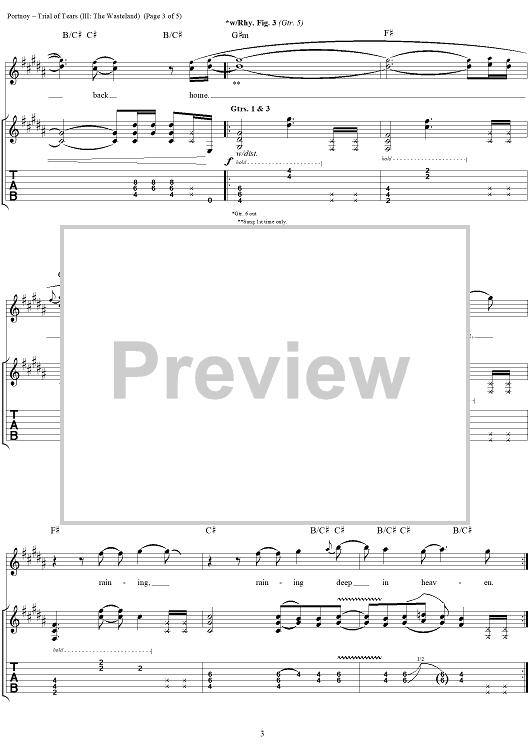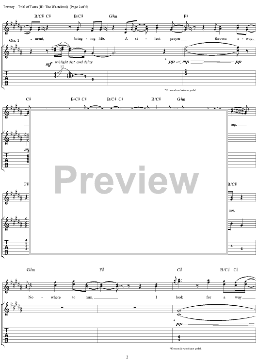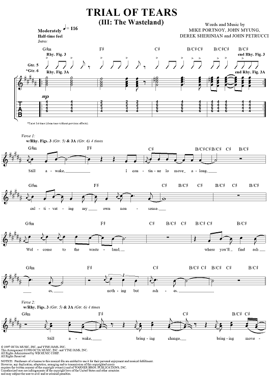 Digital Sheet Music for Trial of Tears, Part 3: The Wasteland by John Myung, Michael Portnoy, Derek Sherinian, Dream Theater, John Petrucci scored for Guitar Tab/Vocal; id:119011
