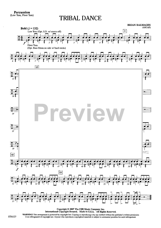 "Tribal Dance - Opt. Percussion" Sheet Music by Brian Balmages