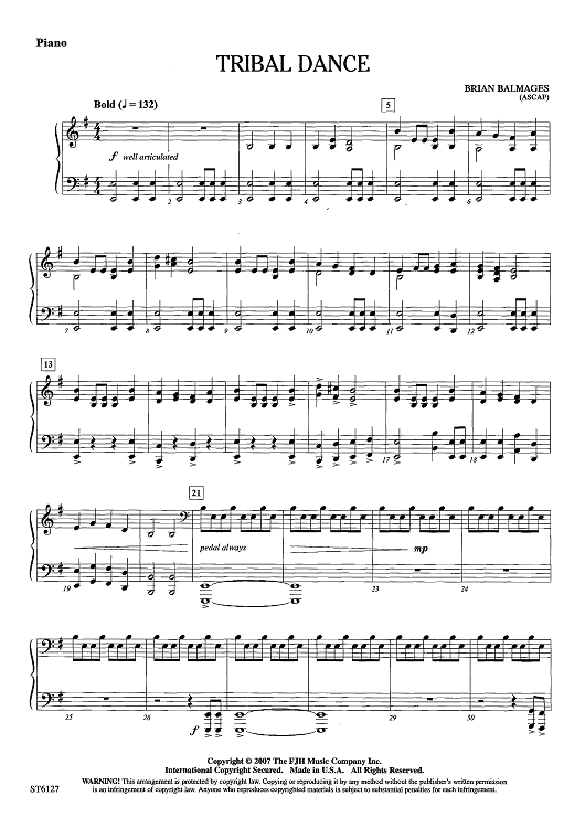 "Tribal Dance - Piano" Sheet Music by Brian Balmages
