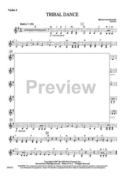 "Tribal Dance - Violin 2" Sheet Music by Brian Balmages