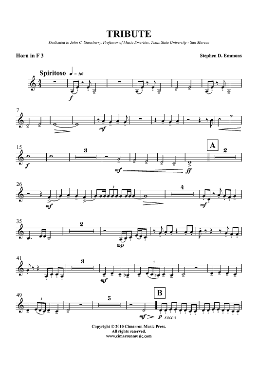 "Tribute - Horn in F 3" Sheet Music by Stephen D. Emmons