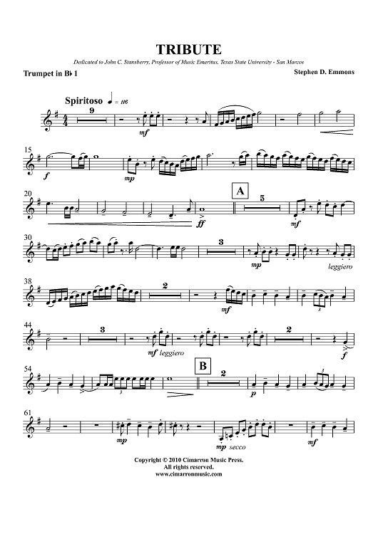 "Tribute - Trumpet 1 in Bb" Sheet Music by Stephen D. Emmons