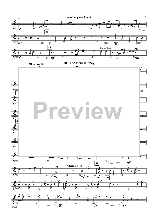 Digital Sheet Music for Trilogy - Alto Sax 1 by Bill Calhoun scored for Concert Band; id:408590
