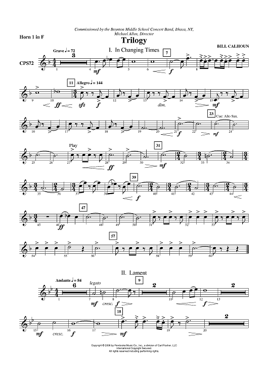 Digital Sheet Music for Trilogy - Horn in F 1 by Bill Calhoun scored for Concert Band; id:408597