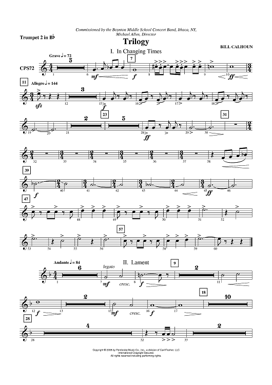 Digital Sheet Music for Trilogy - Trumpet 2 in B-flat by Bill Calhoun scored for Concert Band; id:408595