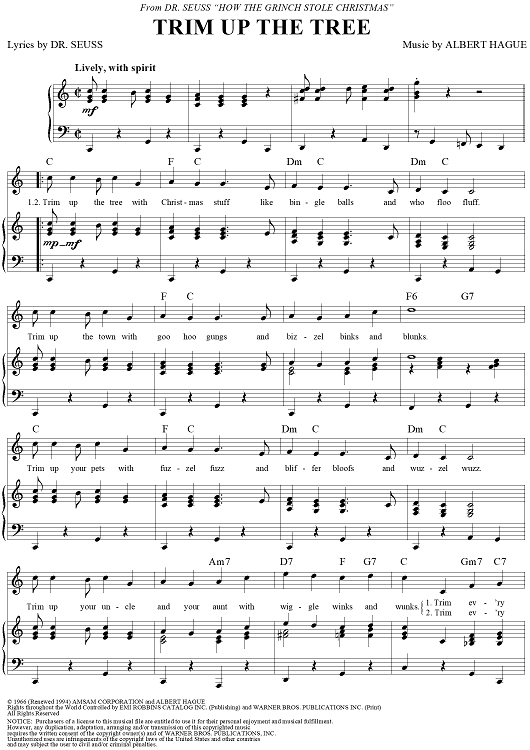 Digital Sheet Music for Trim Up the Tree by Dr. Seuss, Albert Hague scored for Piano/Vocal/Chords; id:115839