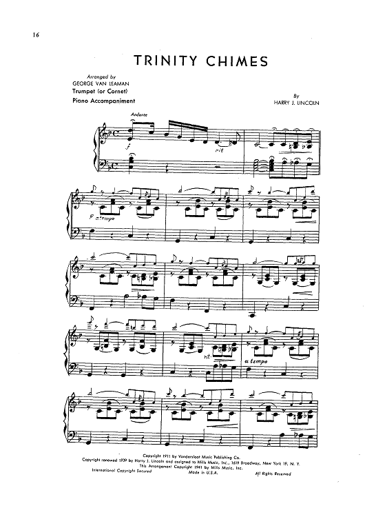 Digital Sheet Music for Trinity Chimes - Piano Accompaniment by , George Van Leaman, Harry J. Lincoln scored for Trumpet/Piano; id:423220