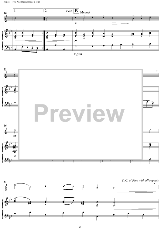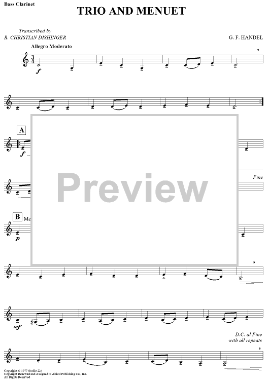 "Trio And Menuet" Sheet Music by George Frideric Handel