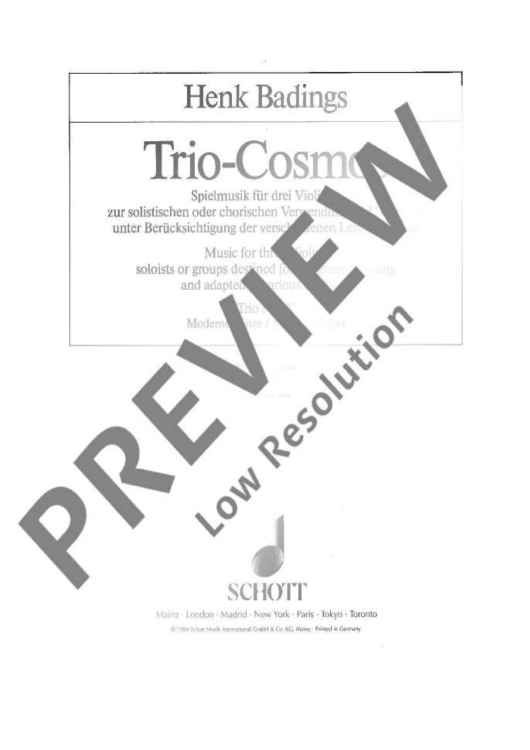 Digital Sheet Music for Trio-Cosmos - Score and Parts by Henk Badings scored for 3 Violins; id:483031