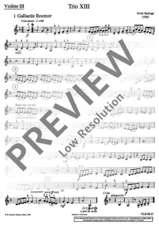 "Trio-Cosmos - Violin Iii" Sheet Music by Henk Badings