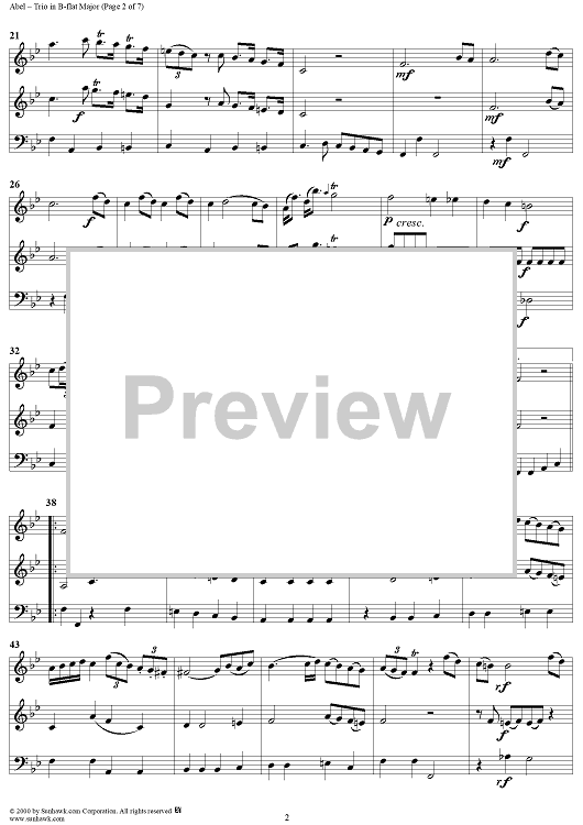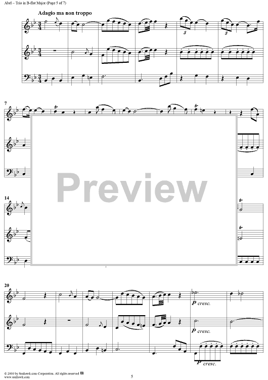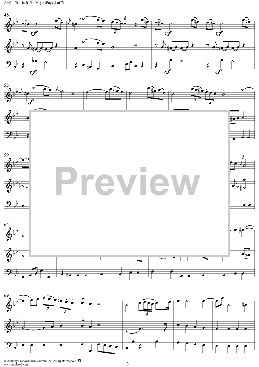 Digital Sheet Music for Trio in B-flat Major Op. 3, No. 3 - Score by Carl Friedrich Abel scored for Trio Sonata; id:201425
