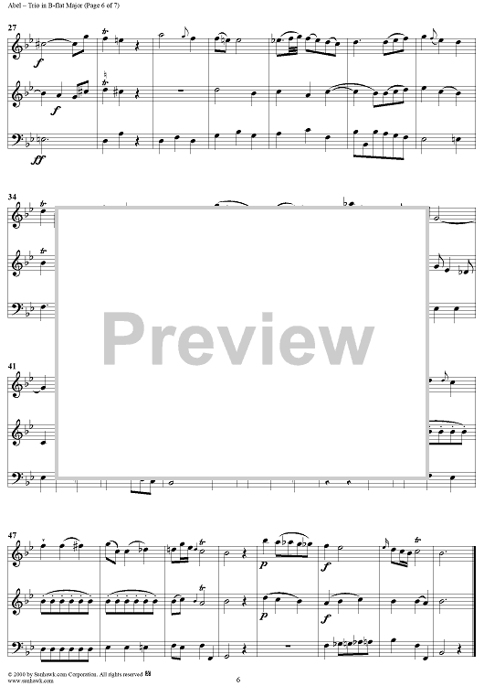 "Trio in B-flat Major Op. 3, No. 3 - Score" Sheet Music by Carl Friedrich Abel