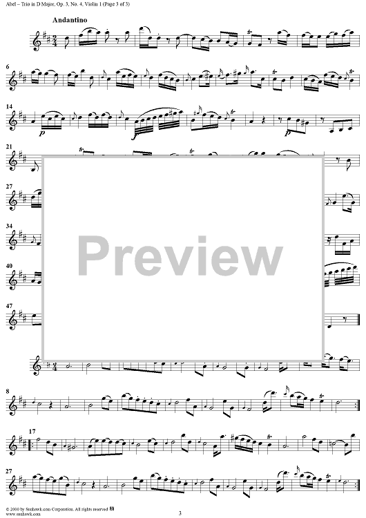 "Trio in D Major, Op. 3, No. 4 - Violin 1" Sheet Music by Carl Friedrich Abel
