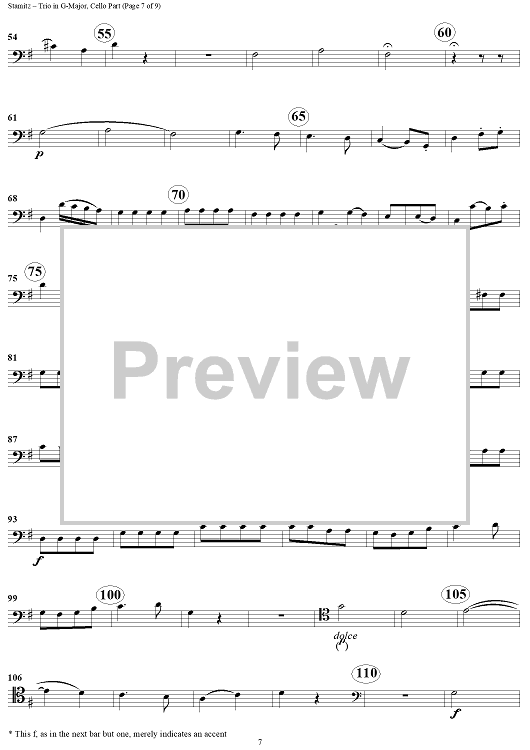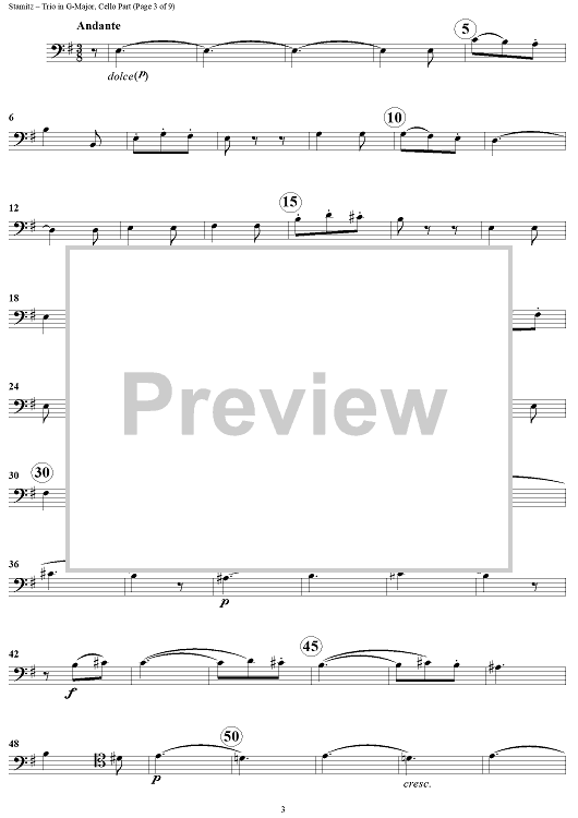 "Trio in G major - Cello" Sheet Music by Carl Stamitz