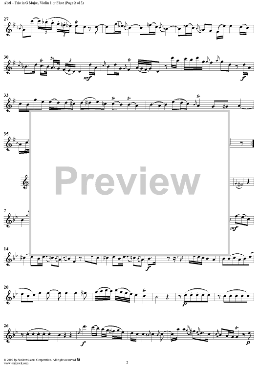 Digital Sheet Music for Trio in G Major Op. 3, No. 1 - Violin 1 or Flute by Carl Friedrich Abel scored for String Trio; id:235529